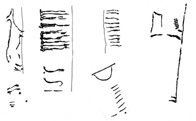 fig.3 - Some of the markings found on various lithophones in the Palaeolithic caves.