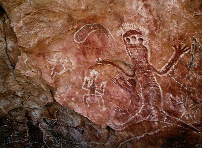 fig.5 - It has been found that percussive sounds reflect back in highly focused ways from rock art painted on curved surfaces, like this Aboriginal painting in a rock shelter in the Kimberley, Australia.