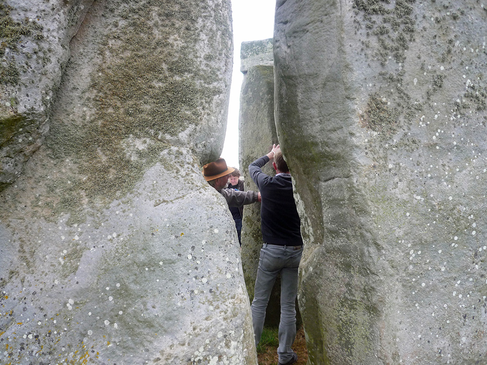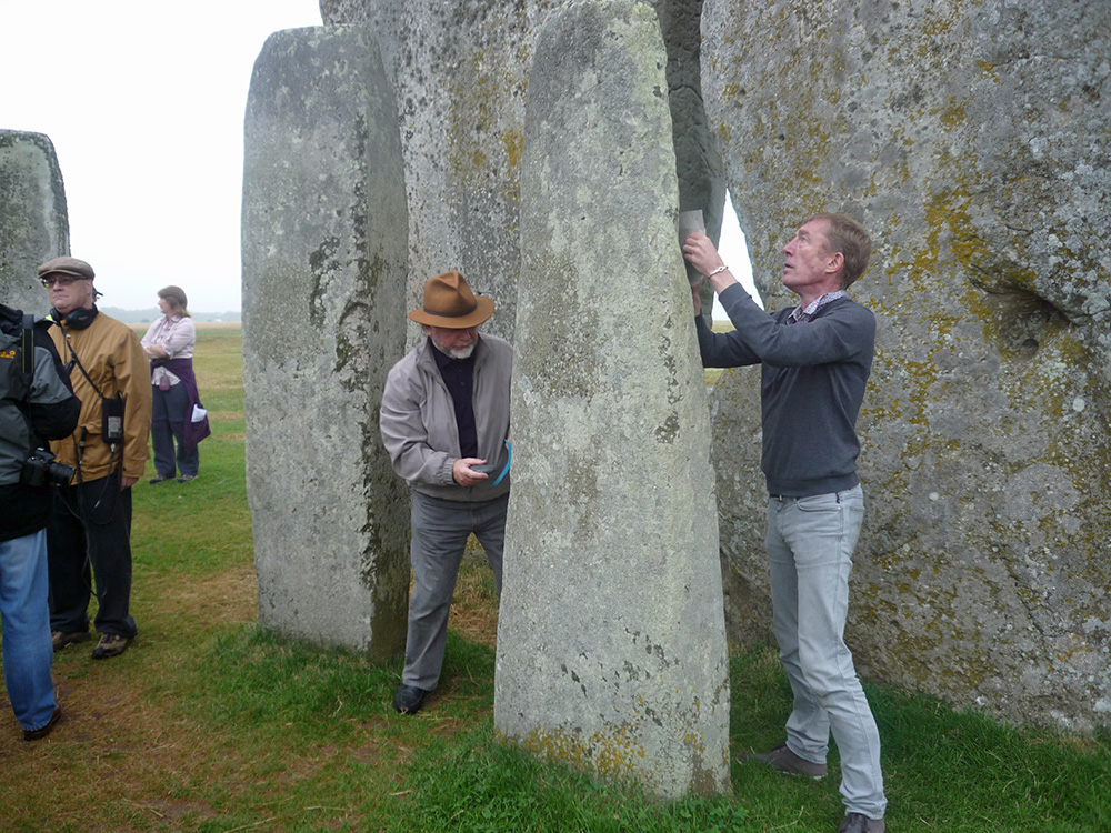 The gallery of photographs on this page shows scenes during the Landscape & Perception project’s day of work at Stonehenge testing the acoustic properties of the bluestones in situ. On “The Stonehenge Bluestones Tests: Investigators’ Comments” page, there are video clips containing remarks on site at Stonehenge by the main investigators, Jon Wozencroft and Paul Devereux, along with archaeological advisor, Timothy Darvill, who was also present during the Stonehenge investigation.
